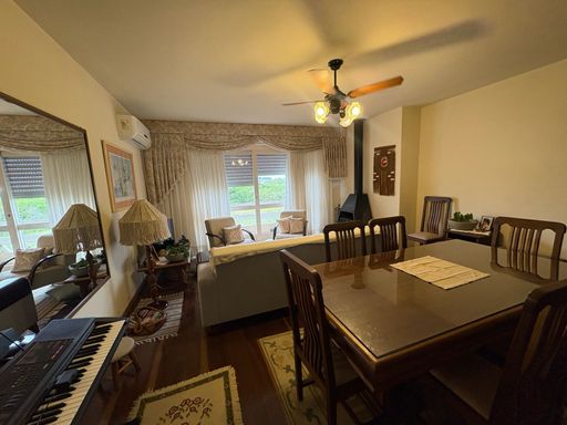 Apartamento com 144m², 3 dormitórios, sendo 1 suíte, terraço, jardim de inverno, ampla sala de estar com lareira integrada a sala de jantar, espaço para bar, cozinha com armários, área de serviço com banheiro, banheiro social, vaga de garagem e edifício com elevador. Apartamento em excelente localização, próximo de escolas, comércios e serviços.
