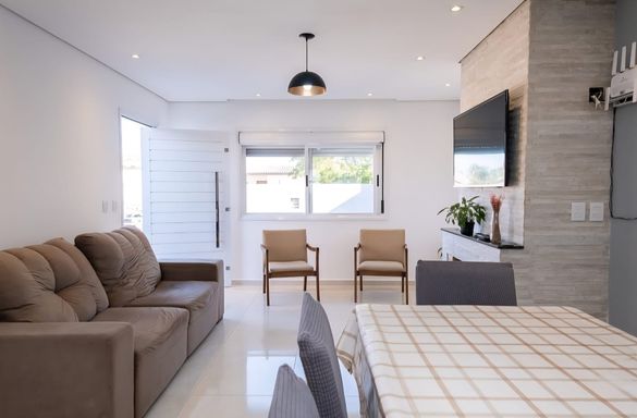 Casa com dois dormitórios em condomínio fechado, com vaga na frente do imóvel, condomínio com área de lazer diferenciada, posição solar privilegiada. Ficam no imóvel: Móveis planejados da cozinha; Fogão; Ar condicionado; Rack; Guarda roupa; Bancada área externa.