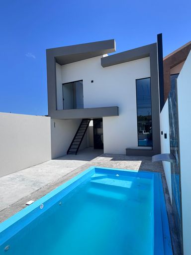 O imóvel conta com dois dormitórios amplos, sala e cozinha em conceito aberto e banheiro social, além de, uma bela área gourmet com churrasqueira e calefator. Para um maior conforto conta com espera para aquecedor à gás e uma ampla piscina. O pátio é totalmente calçado, fechamento com grades em alumínio e duas vagas de estacionamento. Aceita financiamento.