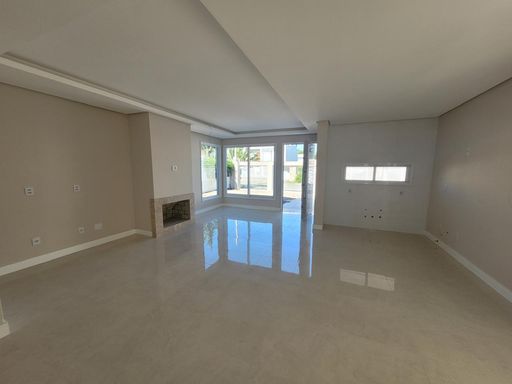 Casa nunca habitada, com fino padrão de acabamento, terreno excepcional medindo 15x40m, 180m² de área construída distribuidos em 3 suítes, sala de estar com lareira, cozinha americana, lavanderia, lavabo, alpendre, churrasqueira, sala de jantar, duas vagas cobertas e espaço para colocar mais 3 carros.