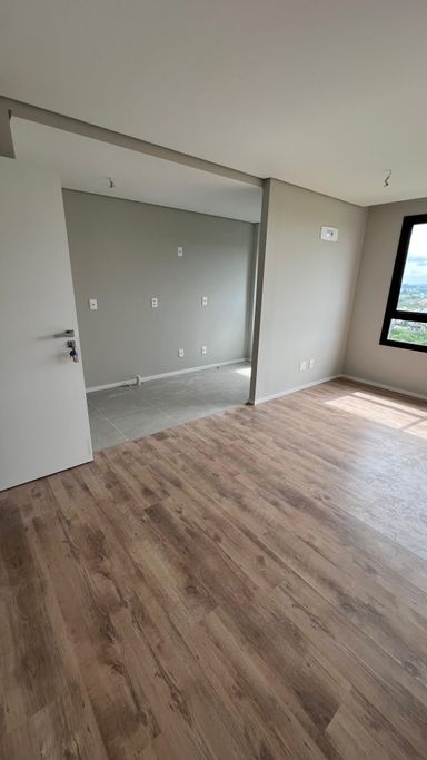 O imóvel dispõe de sala, 1 dormitório, cozinha integrada com churrasqueira, banheiro e vaga de garagem coberta.