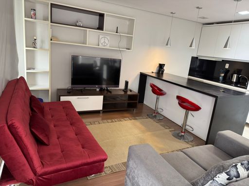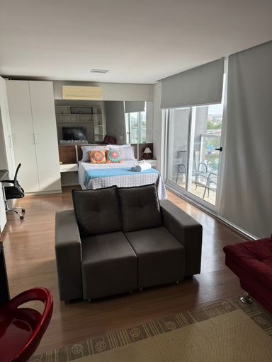 O imóvel conta com ambiente integrado, bem distribuído e decorado, proporcionando funcionalidade e aconchego. Possui sacada, que garante ótima iluminação natural e ventilação, além de tornar o espaço ainda mais agradável.