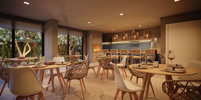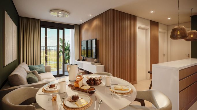 Apartamento no Cassino, 2 dormitórios, sala de estar, cozinha americana, banheiro social, sacada, churrasqueira e vaga. Andar alto.
