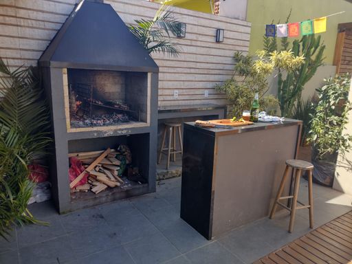 Dispõe ainda de área de parrilla com pergolado, escritório, pátio privativo, água quente em pontos estratégicos e 2 vagas de estacionamento.