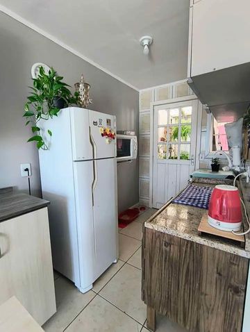 São 2 dormitórios, 1 banheiro, vaga de garagem **coberta** e um agradável pátio nos fundos — ideal para momentos de lazer.