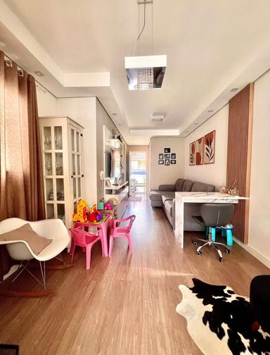 A residência conta com acabamento em gesso, piso laminado, porcelanato e rebaixo com iluminação, proporcionando um visual moderno, aconchegante e sofisticado em todos os espaços.