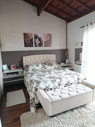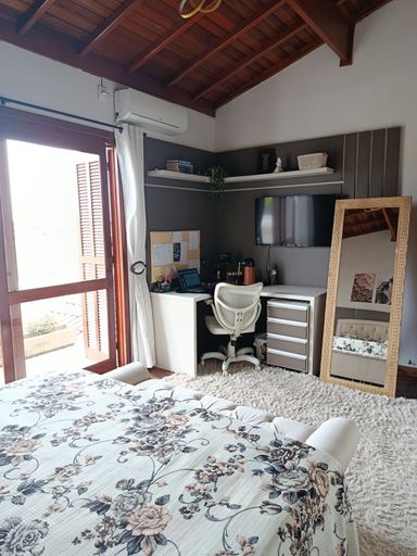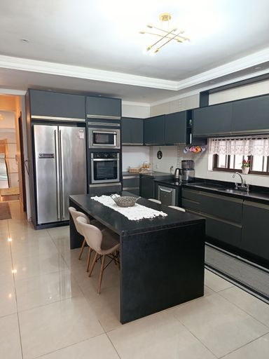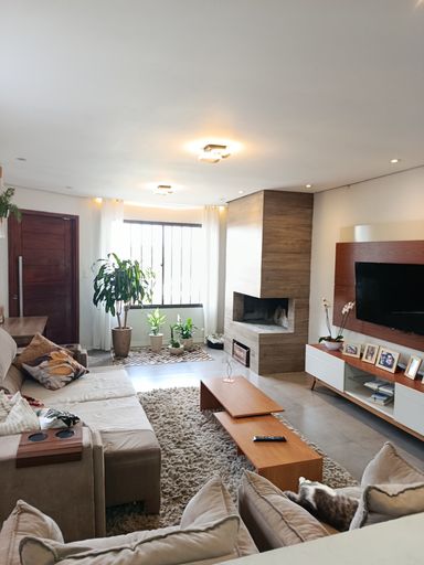 Sobrado espaçoso e bem iluminado, com 4 dormitórios, ideal para famílias que buscam conforto e praticidade. Sala de estar com lareira aconchegante, integração com sala de jantar. Banheiro da suíte equipado com hidromassagem, proporcionando relaxamento. Cozinha planejada com bons armários, bancada ampla e circulação prática para refeições. Área de lazer com churrasqueira, perfeita para encontros e refeições ao ar livre. Sistema de aquecimento/energia com placa(s) solar(es), reduzindo custos e valorizando o imóvel. Garagem coberta para veículos, com área de manobra e acesso direto à casa.